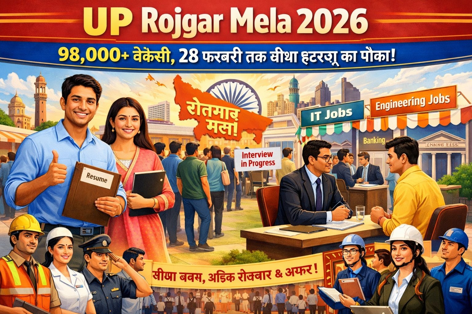 UP Rojgar Mela 2026: 98,000+ वैकेंसी, 28 फरवरी तक सीधा इंटरव्यू का मौका!