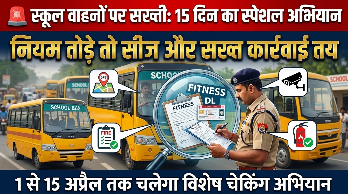 स्कूल वाहनों पर सख्ती: 15 दिन का स्पेशल अभियान, नियम तोड़े तो सीज और कार्रवाई तय