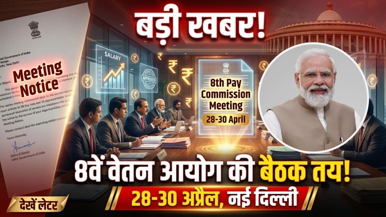 🚨 बड़ी खबर! 8वें वेतन आयोग की बैठक तय – 28 से 30 अप्रैल दिल्ली में, देखें पूरा लेटर भारत सरकार के आठवें केंद्रीय वेतन आयोग द्वारा एक महत्वपूर्ण सूचना जारी की गई है। जारी नोटिस के अनुसार, आयोग 28, 29 और 30 अप्रैल 2026 (मंगलवार से गुरुवार) को दिल्ली में विभिन्न संगठनों/संघों के साथ … Read more