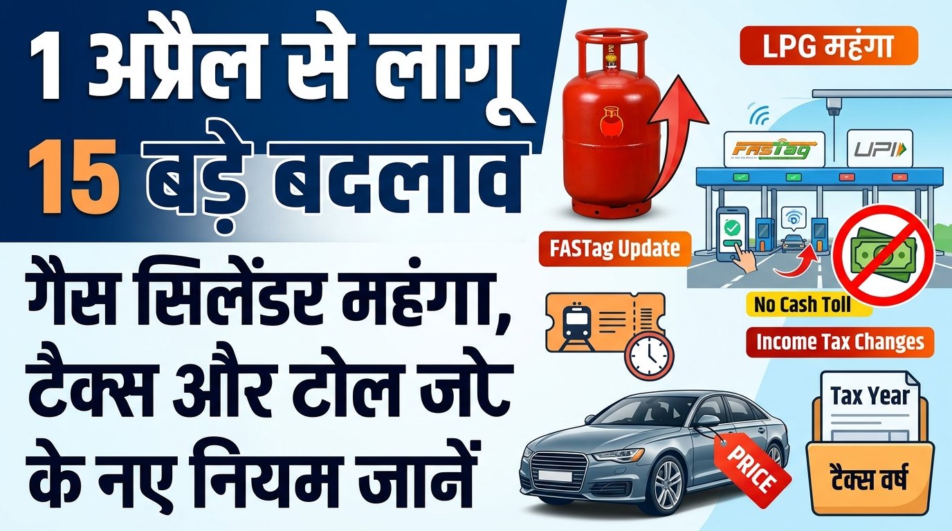 1अप्रैल से लागू 15 बड़े बदलाव: गैस सिलेंडर महंगा, टैक्स और टोल के नए नियम जानें
