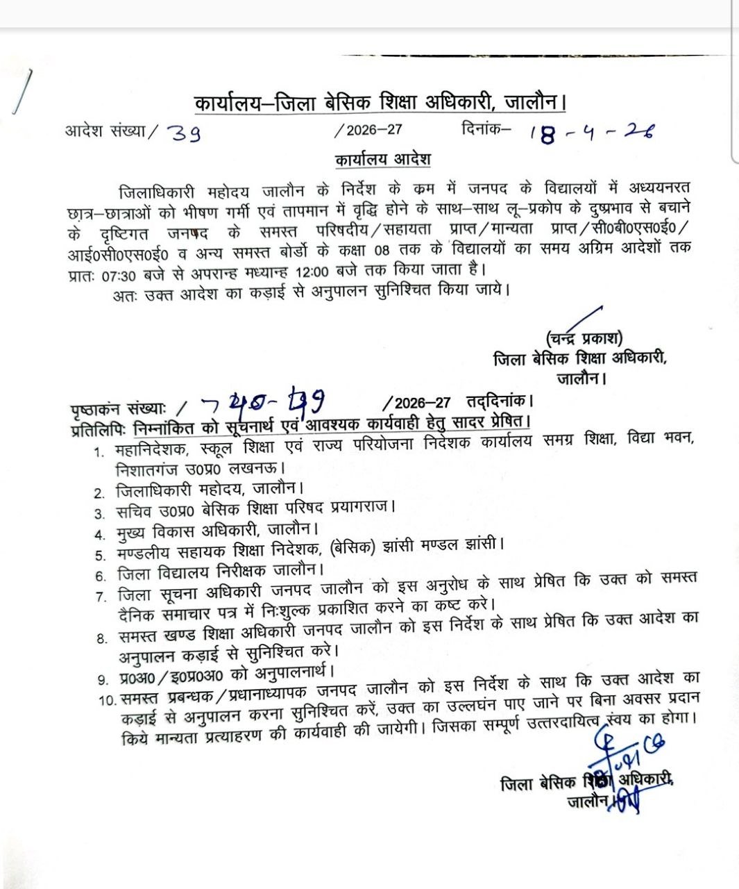 अभी-अभी एक और जिले में आठवीं कक्षा तक के समस्त स्कूल 07:30-12:00 तक संचालित होंगे , देखें आदेश