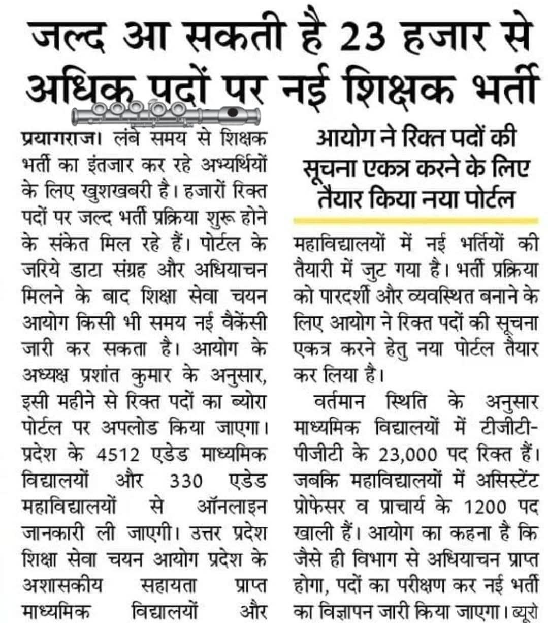 अच्छी खबर: जल्द आ सकती है 23 हजार से अधिक पदों पर नई शिक्षक भर्ती April 12, 2026 by Ravi Singh अच्छी खबर: जल्द आ सकती है 23 हजार से अधिक पदों पर नई शिक्षक भर्ती