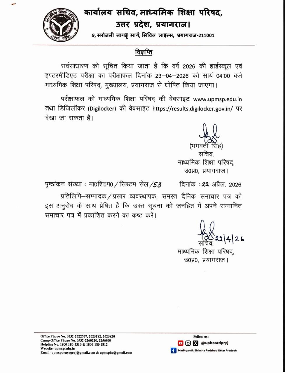 बड़ी खबर: लाखों छात्रों का इंतजार खत्म, Today इतने टाइम जारी होगा 10-12th का रिजल्ट, तुरंत देखें सचिव महोदया का आदेश April 23, 2026 by Ravi Singh बड़ी खबर: लाखों छात्रों का इंतजार खत्म, Today इतने टाइम जारी होगा 10-12th का रिजल्ट, तुरंत देखें सचिव महोदया का आदेश