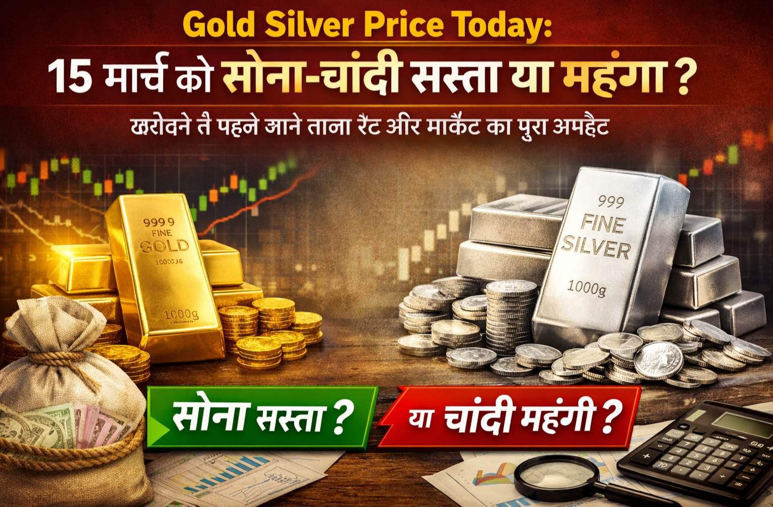 Gold Silver Price Today: 15 मार्च को सोना-चांदी सस्ता या महंगा? खरीदने से पहले जानें ताजा रेट और मार्केट का पूरा अपडेट