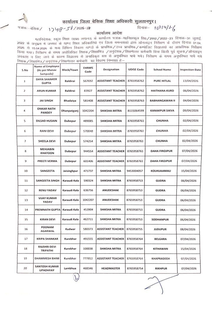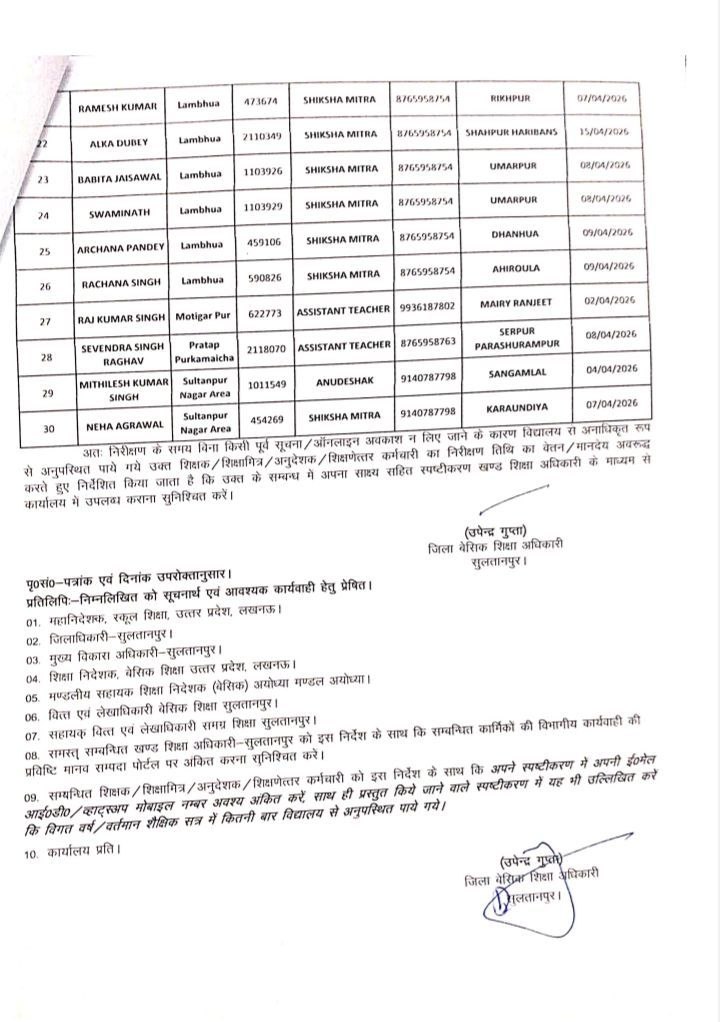 निम्नलिखित शिक्षकों एवं शिक्षामित्रों तथा अनुदेशकों का वेतन – मानदेय एक दिन का रुका, लिस्ट में चेक करें नाम,वजह जानिए April 23, 2026 by Ravi Singh निम्नलिखित शिक्षकों एवं शिक्षामित्रों तथा अनुदेशकों का वेतन – मानदेय एक दिन का रुका, लिस्ट में चेक करें नाम,वजह जानिए