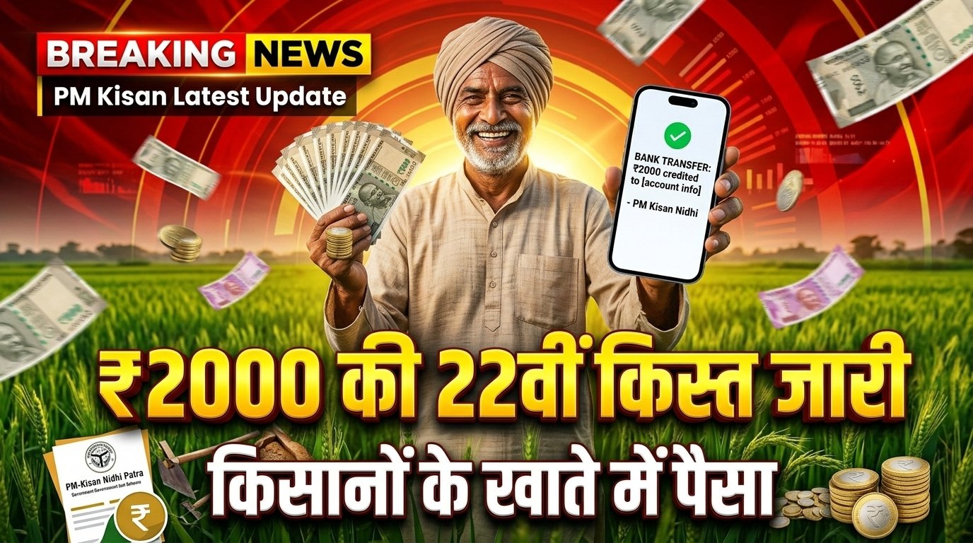 देशभर के करोड़ों किसानों के लिए बड़ी खुशखबरी आई है। प्रधानमंत्री किसान सम्मान निधि योजना के तहत 22वीं किस्त जारी कर दी गई है। प्रधानमंत्री Narendra Modi ने असम के Guwahati से इस किस्त को लॉन्च किया और DBT (Direct Benefit Transfer) के जरिए सीधे किसानों के बैंक खातों में राशि भेजी गई।