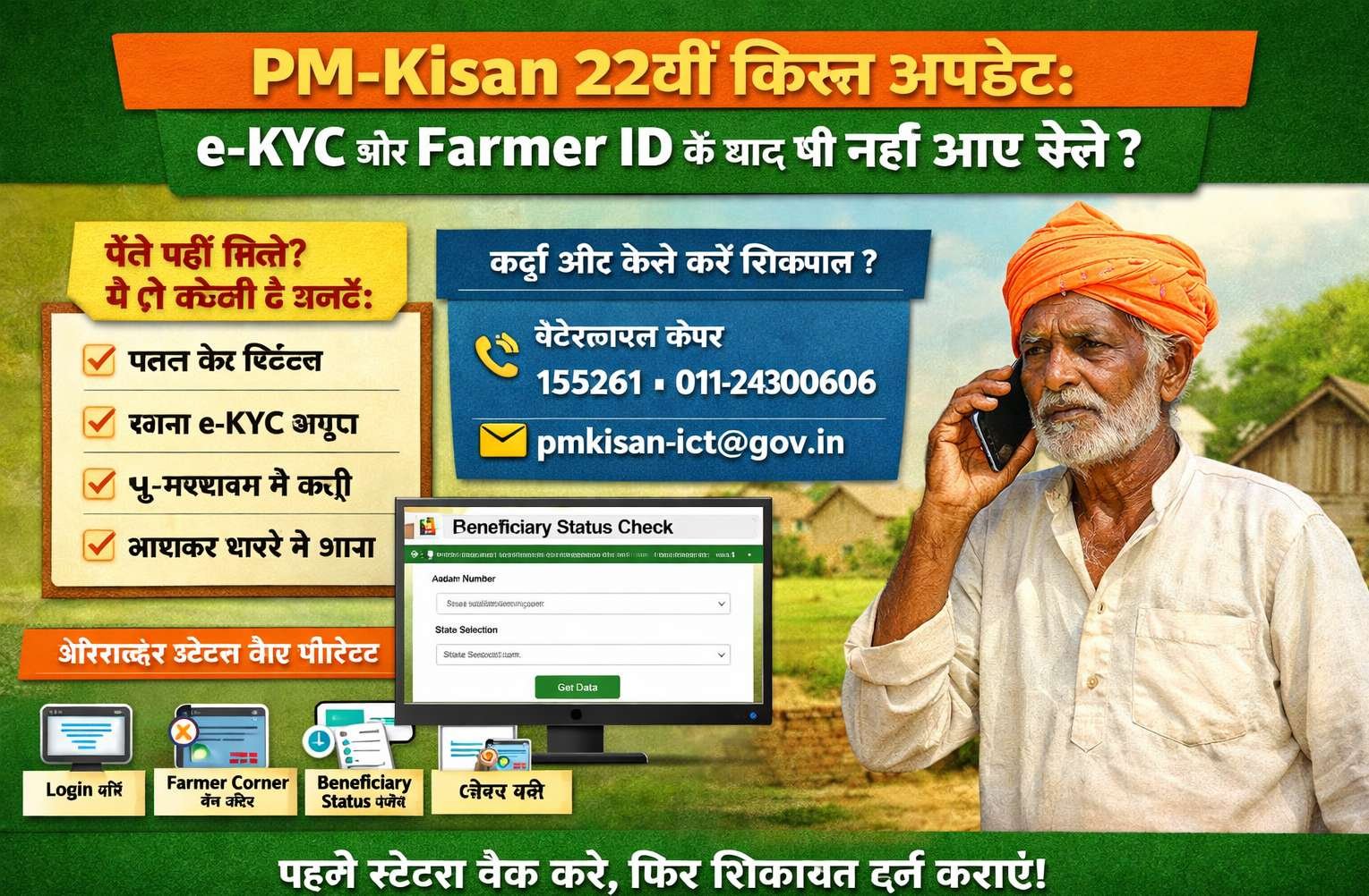 PM Kisan 22nd Installment : e-KYC और Farmer ID अपडेट होने के बाद भी पैसे नहीं आए? जानें वजह, शिकायत और स्टेटस चेक करने का पूरा ऑनलाइन प्रोसेस