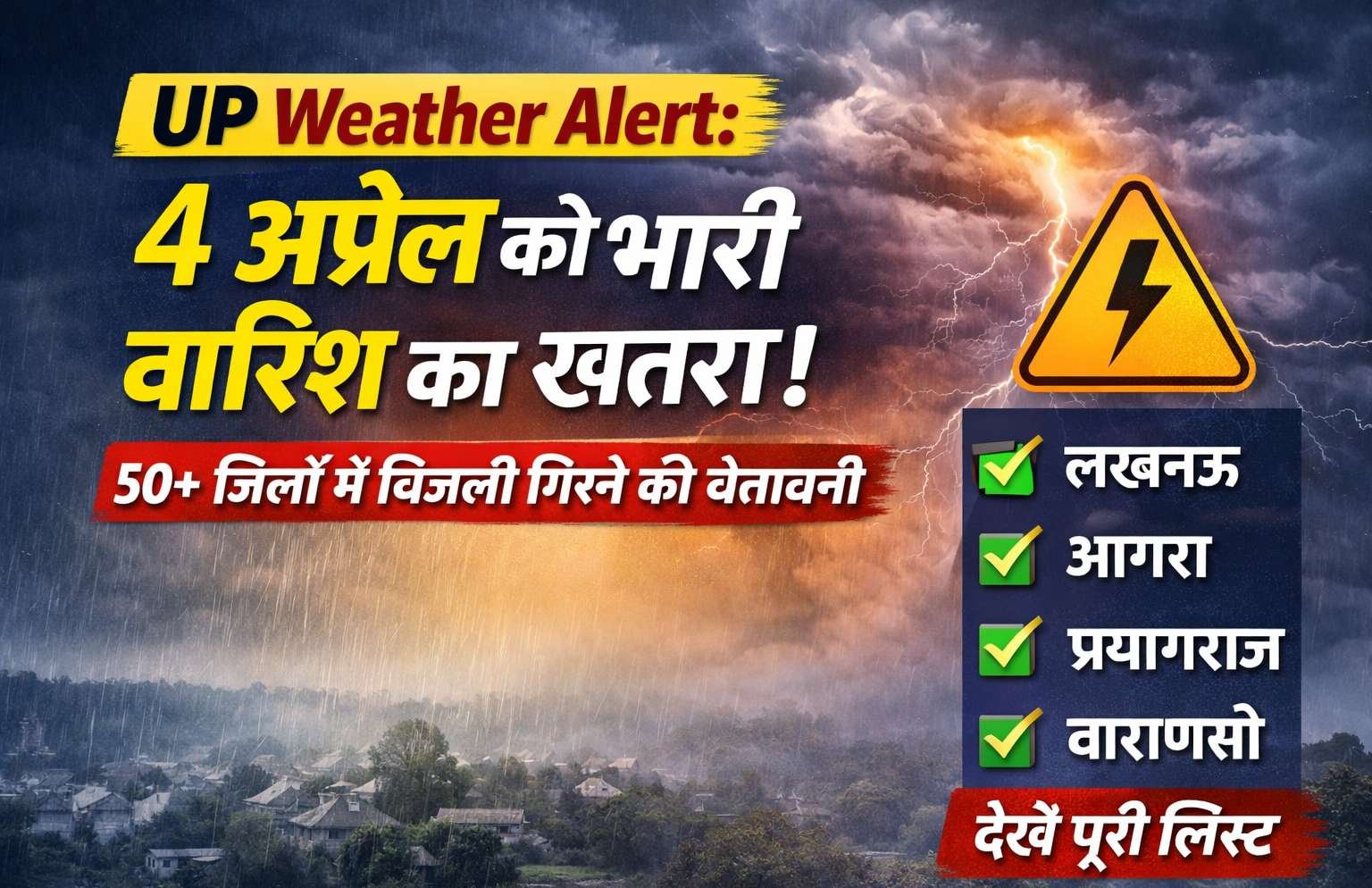 UP Weather Alert: 4 अप्रैल को भारी बारिश का खतरा! 50+ जिलों में बिजली गिरने की चेतावनी