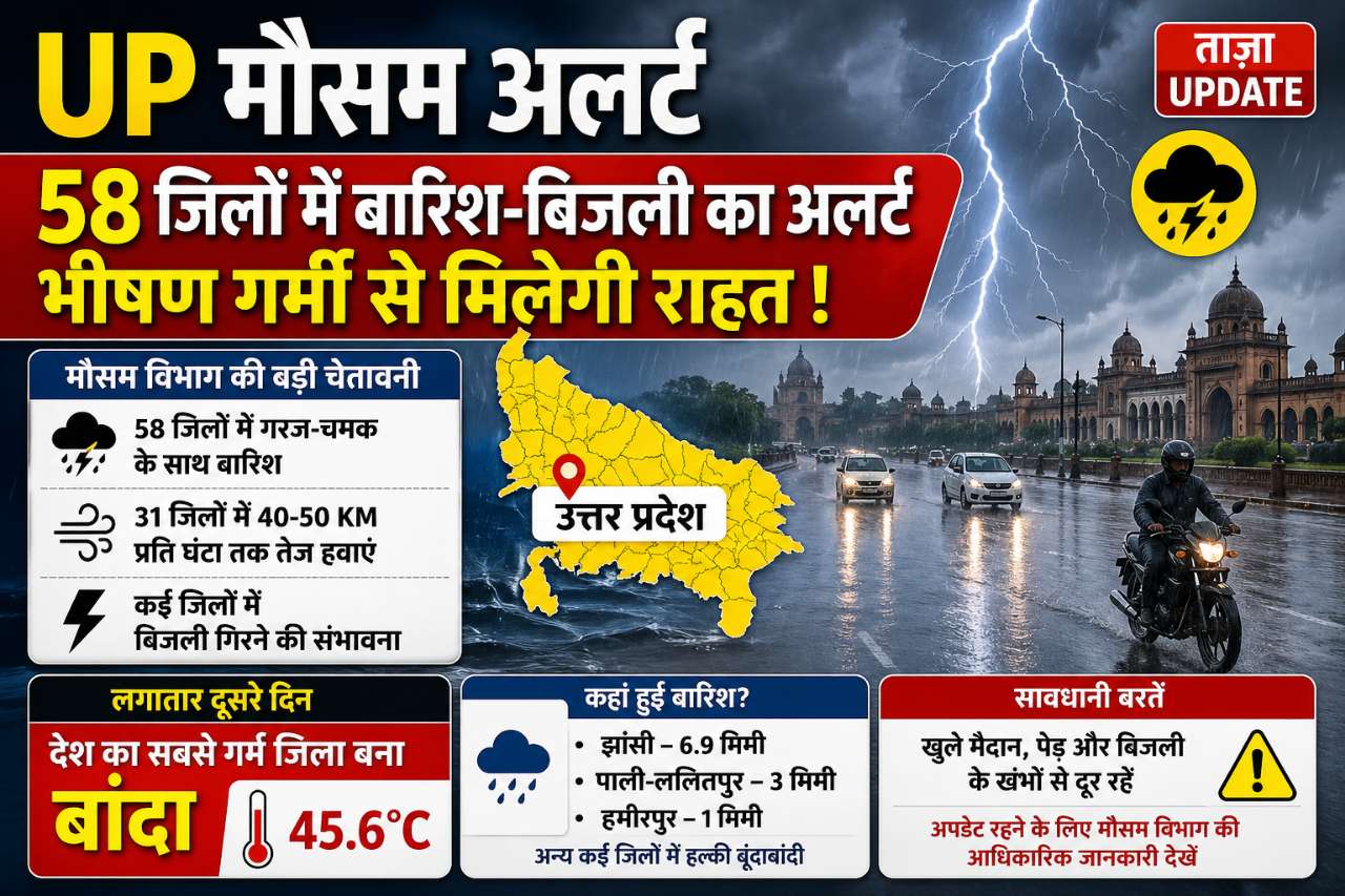 UP Weather Alert: यूपी के 58 जिलों में बारिश-बिजली का खतरा, IMD की नई चेतावनी से मची हलचल